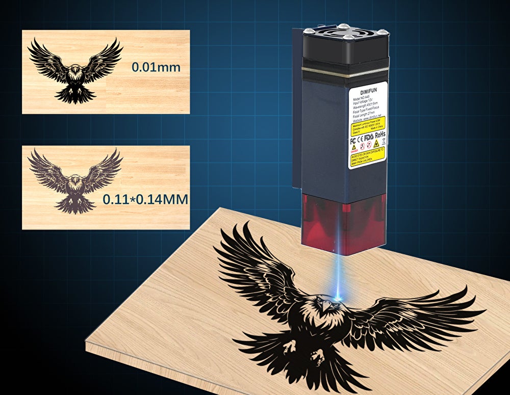 最新のレーザー彫刻技術を搭載しているため、通常の彫刻機は0.11mm~0.14mm程度ですが、クラフトレーザープレミアムは0.01mmの精密な加工が可能です。