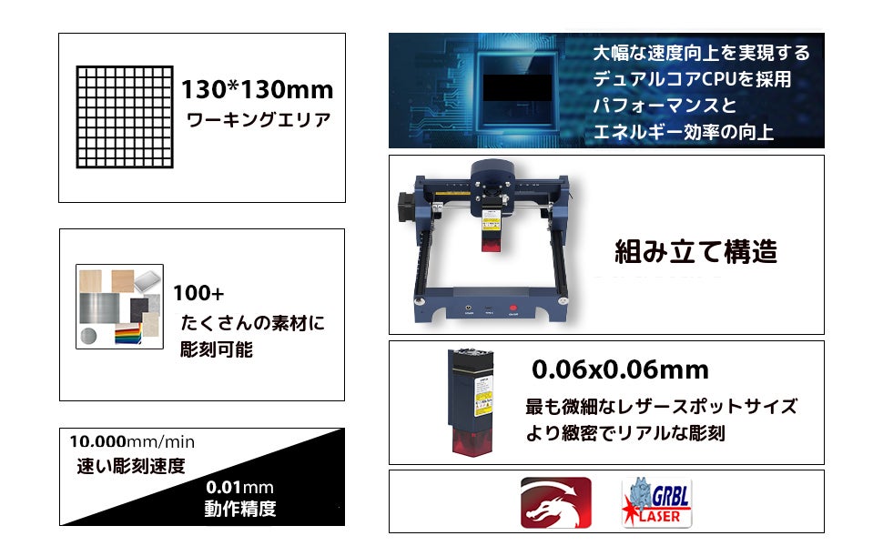 32ビットデュアルコアMCU搭載の最新マザーボードを採用し、最大10000mm/分のスピードでサクサク作業!
