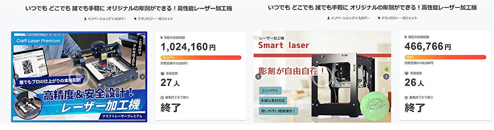 レーザー加工機はこれまでのプロジェクトで、のべ1,490,926円の53人のご支援と293人のお気に入りをいただきました。