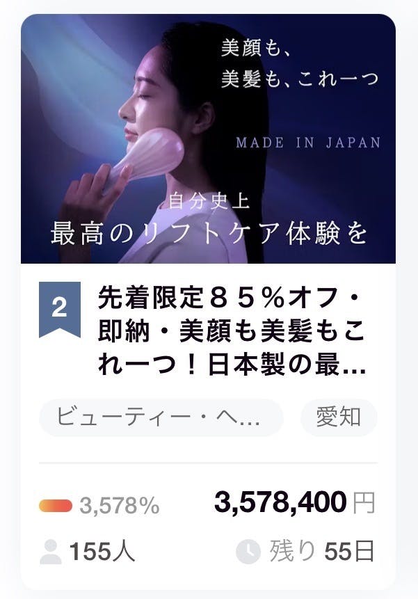 おかげさまで本プロジェクトは、CAMPFIRE総合ランキングで2日連続『第2位』を獲得し、さらに達成率は3500%を突破いたしました!
