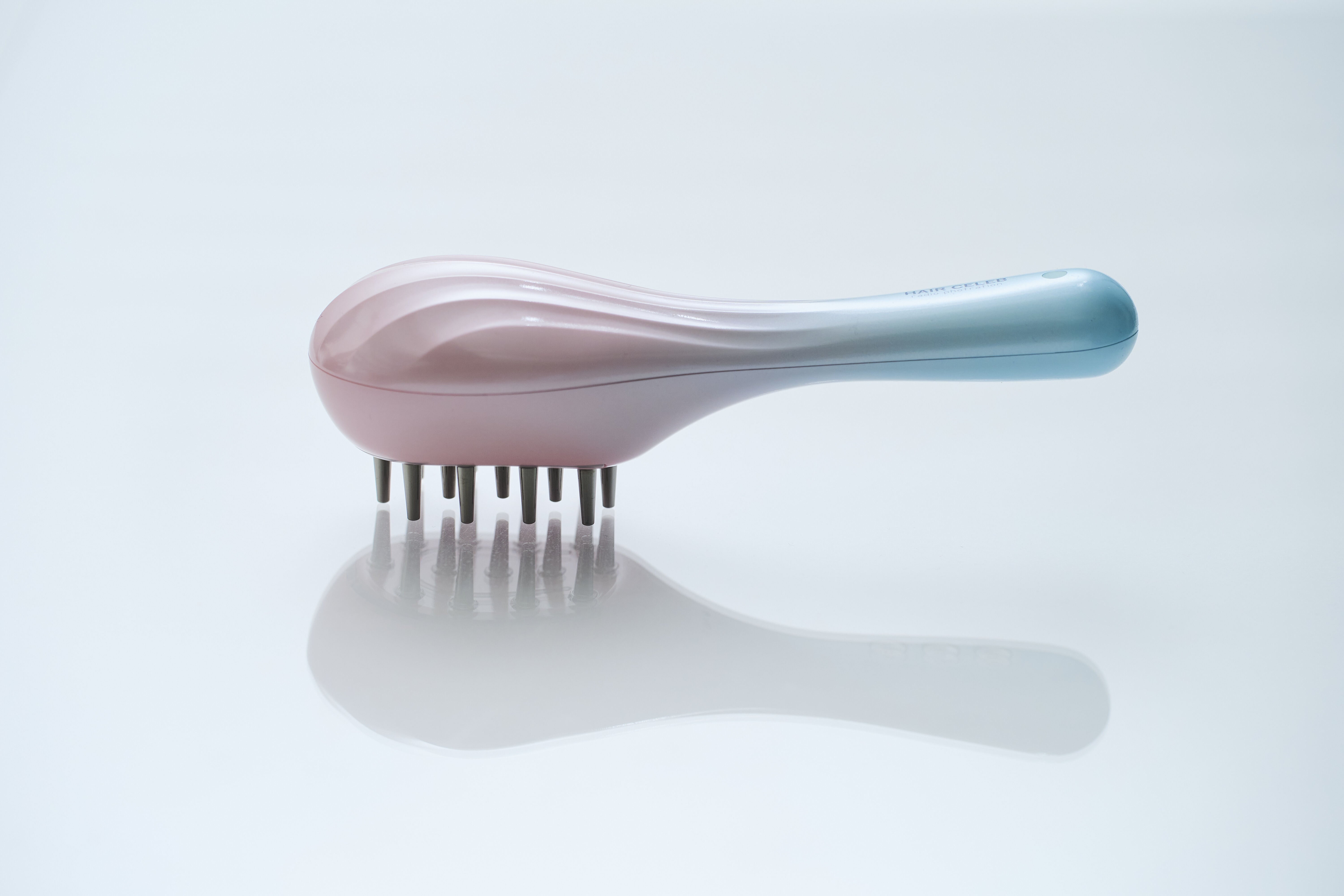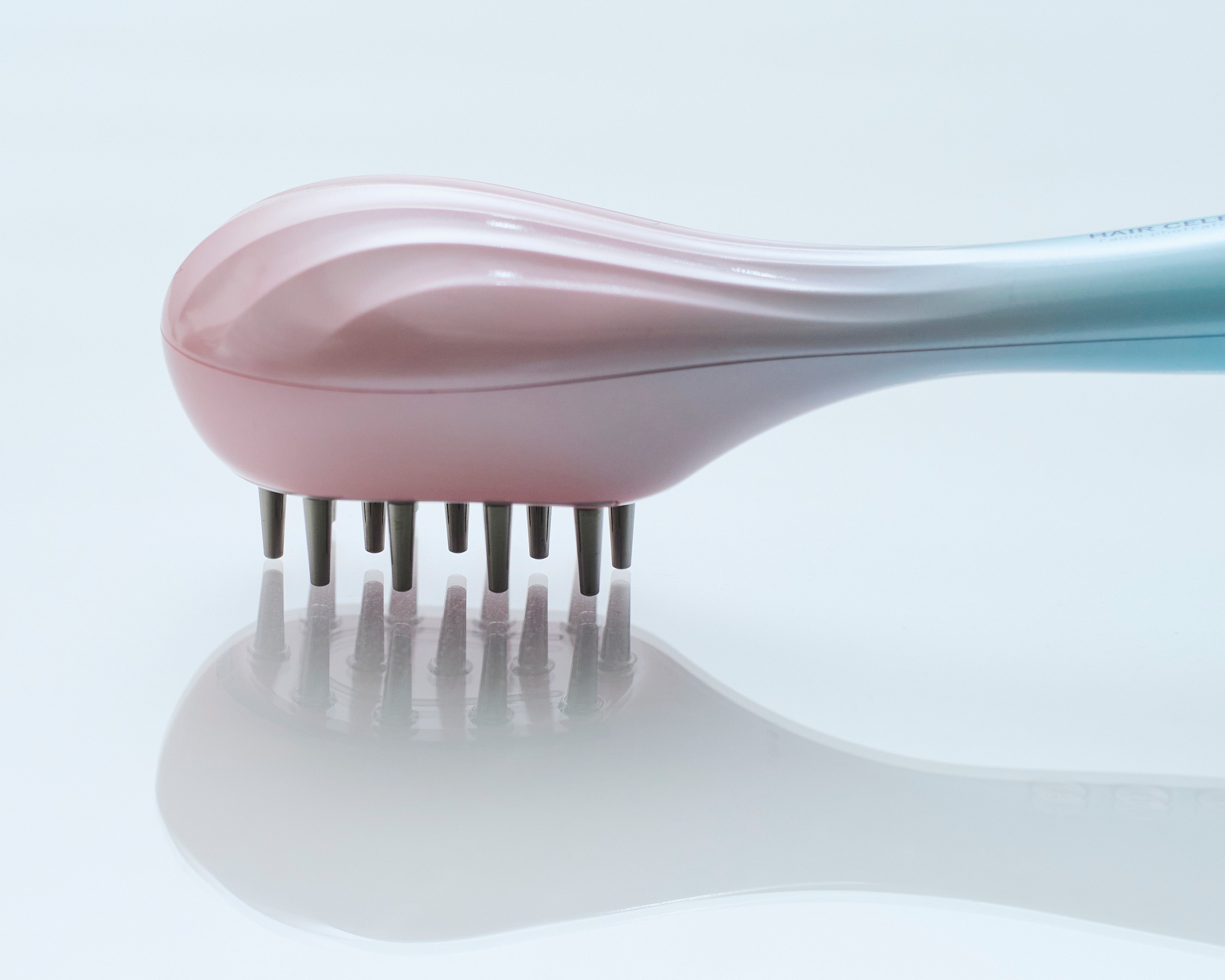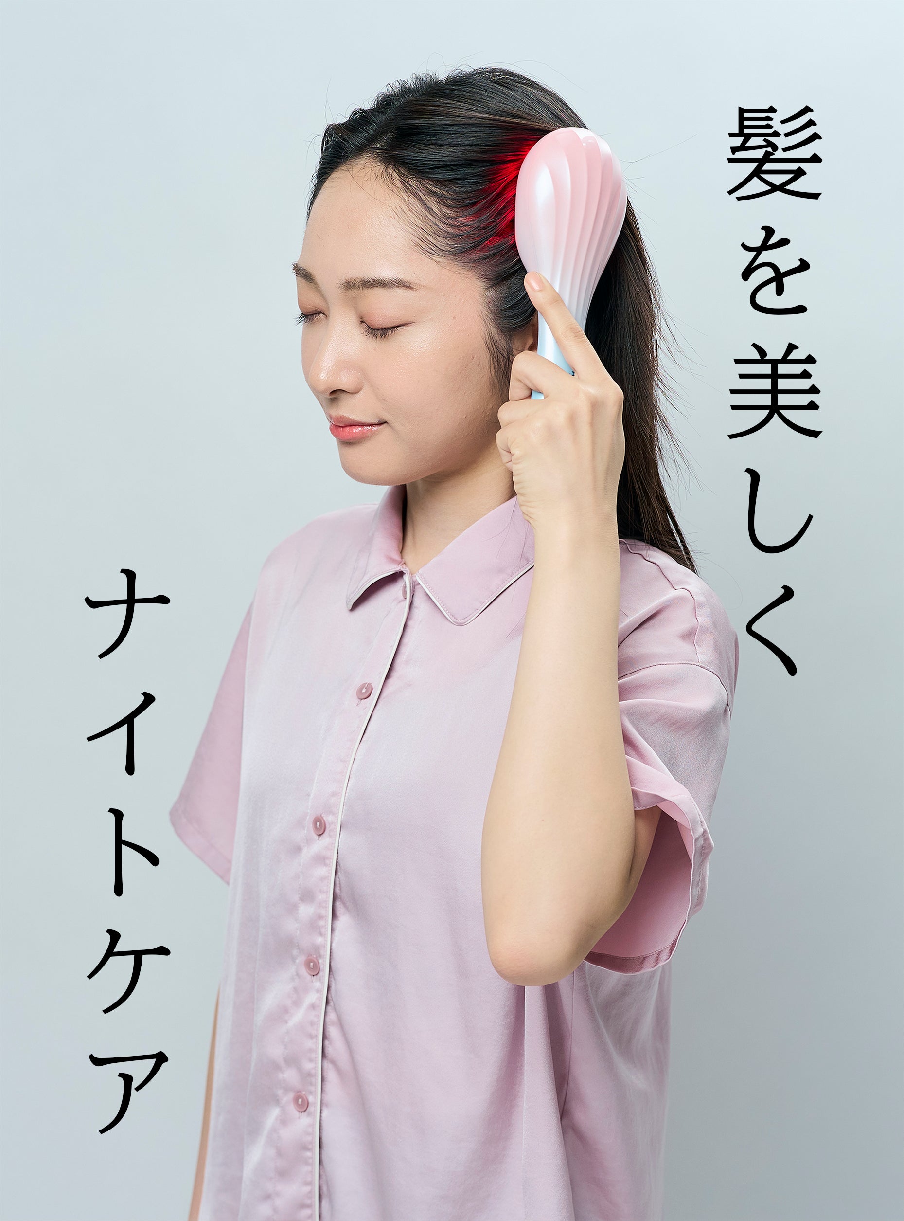 チタンコーティングされたくし状のヘッドが頭皮にやさしくフィットし、髪の根元からハリ・ツヤを引き出します。