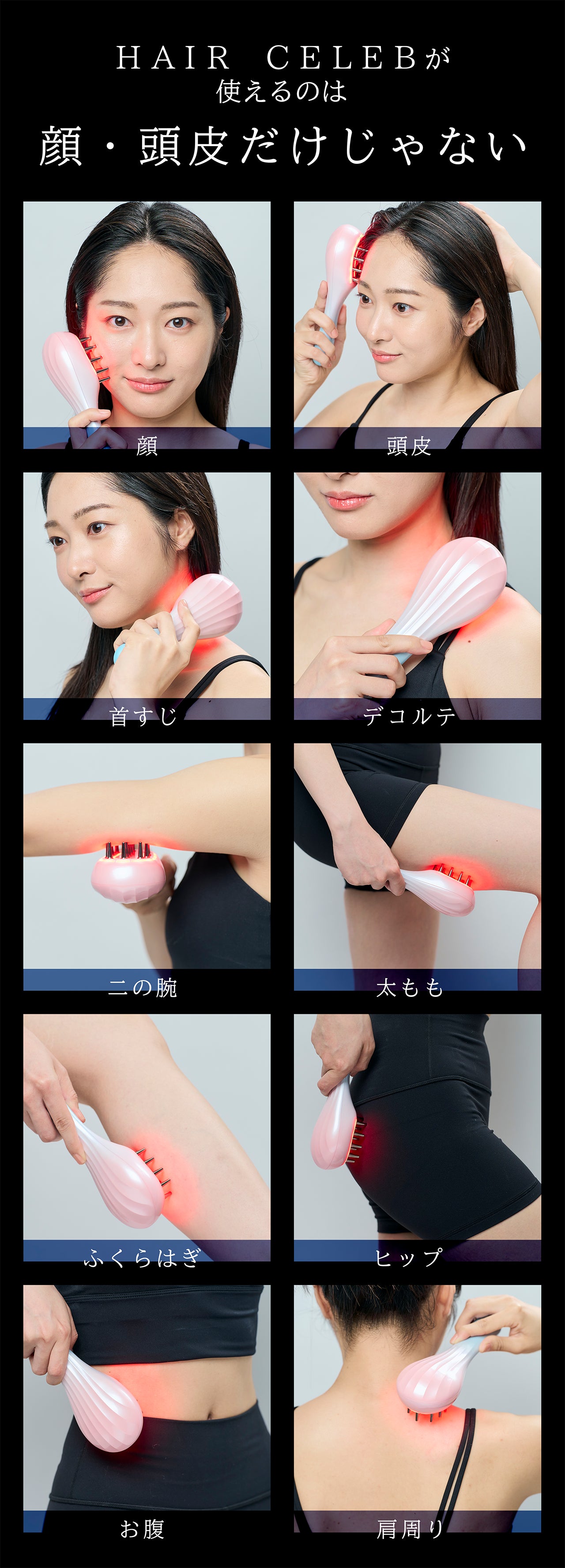 「ヘアセレブ」という名前から“髪専用”と思われがちですが、実際には、顔・髪・体と、全身にアプローチできる高機能なリフトケアブラシです。