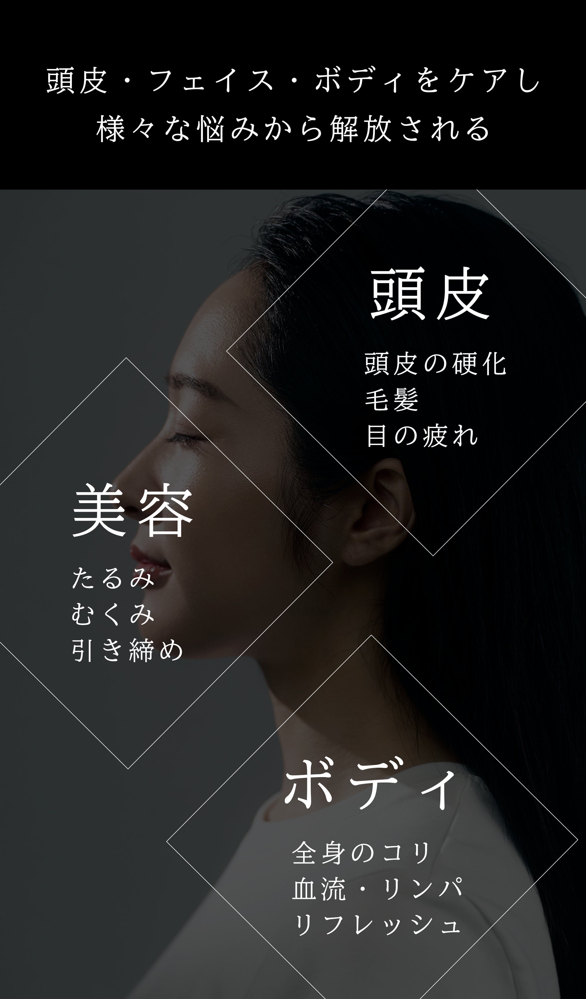 フェイスラインや頭皮にフィットし、全身ケアにご使用いただけます。