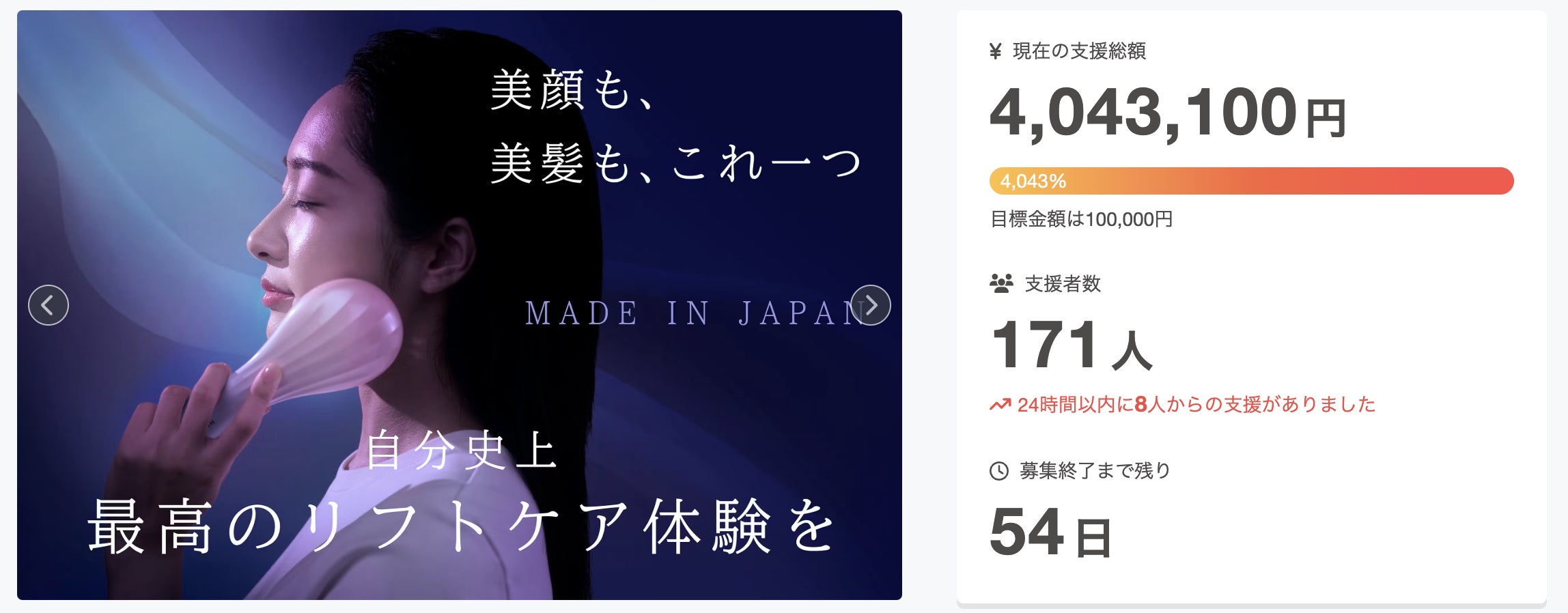 2025/11/06 20:08皆さま、温かいご支援を本当にありがとうございます。おかげさまで、「ヘアセレブ」のプロジェクトは達成率4,000%を突破という、大きな反響をいただくことができました。心より感謝申し上げます。今回の結果は、「顔も髪も、一度にケアしたい」という多くの方の想いと、「日本製の安心品質で、長く使える美顔器を届けたい」という私たちの想いが重なった結果だと感じています。そして現在、皆さまにお届けする商品の発送を順次開始しております。ご支援いただいた順に丁寧に検品・梱包を行い、できる限り早くお手元にお届けできるよう進めております。商品が届いた際は、ぜひ使い心地や実感した変化など、率直なご感想をお聞かせください。レビューやSNSでの投稿も、今後の改善や新たな開発の大きな励みになります。改めて、今回の大きなご支援と温かい応援に、プロジェクトチーム一同、心から感謝申し上げます。これからも「ヘアセレブ」が、毎日の美容時間を少し特別にする存在であり続けられるよう、真心を込めてサポートしてまいります。引き続き、どうぞよろしくお願いいたします。株式会社サンライズ代表取締役 井上 愛 もっと見る