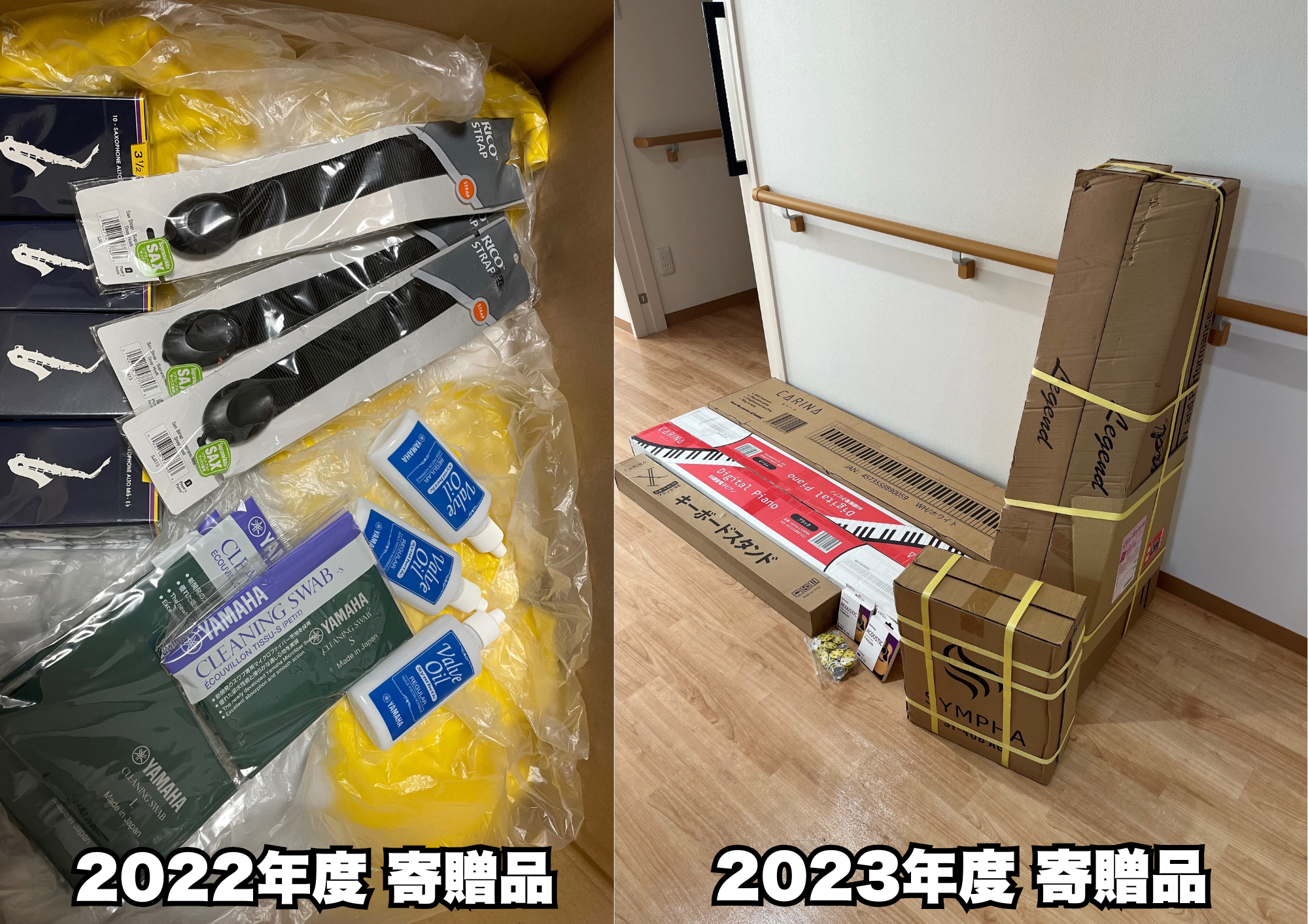 上記の活動を行う中、2022年より収益金にて児童養護施設様に対し、楽器の寄贈を行っています。