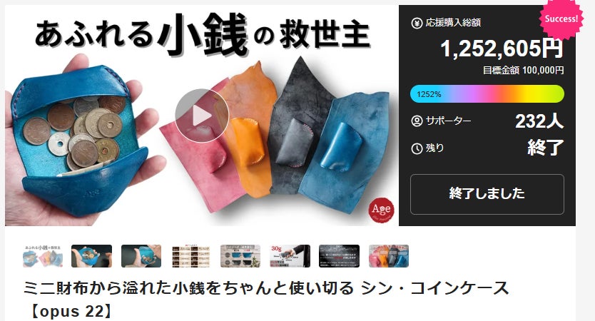 2024年6月 ミニ財布から溢れた小銭をちゃんと使い切る シン・コインケース 【opus 22】Makuakeリリース 支援総額:1,252,605円