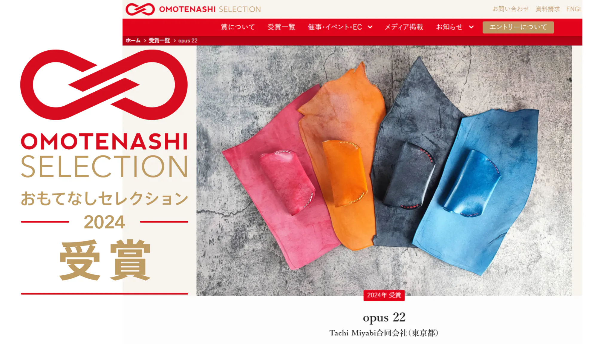 opus 22はおもてなしセレクション2024を受賞致しました。