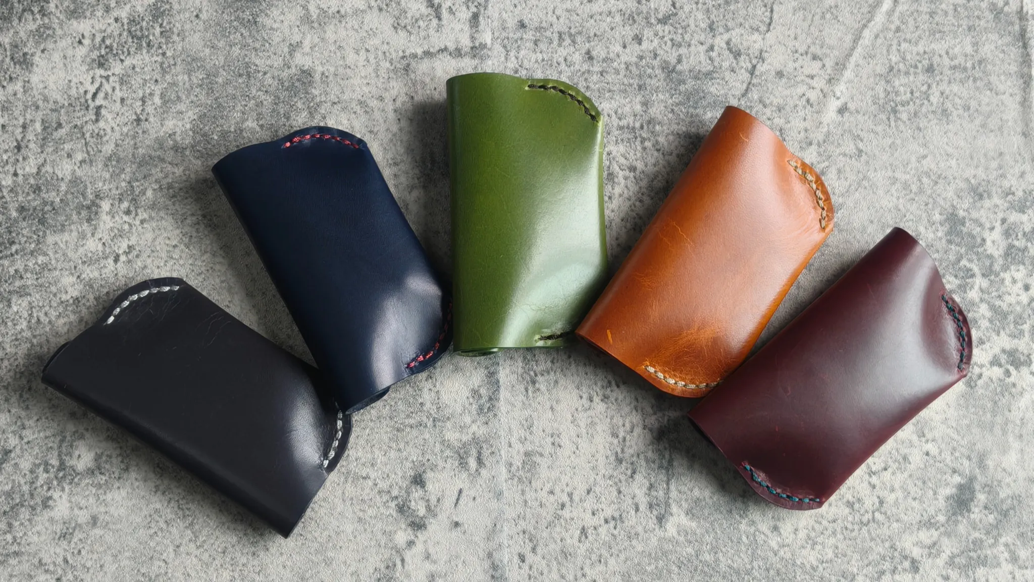 使用部材が革と糸だけのため、糸の色で製品の印象もガラッと変わります。