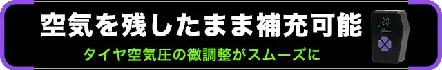 空気補充機能を搭載しており、ポンプ内部の圧力を保持したまま、ゼロから再加圧することなく空気を追加することが可能です。タイヤ圧の微調整がスムーズに行え、繰り返しの補充作業でも効率的に対応できます。特に、高精度な圧力管理が求められる場面や、複数台のメンテナンス時などに非常に重宝します。※本機能は、耐圧が120PSI未満のタイヤにのみ対応しております。