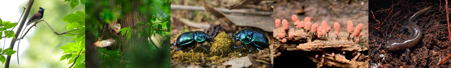 多種多様な生き物たちの存在、哺乳類、野鳥、昆虫、爬虫類、両生類、菌類──