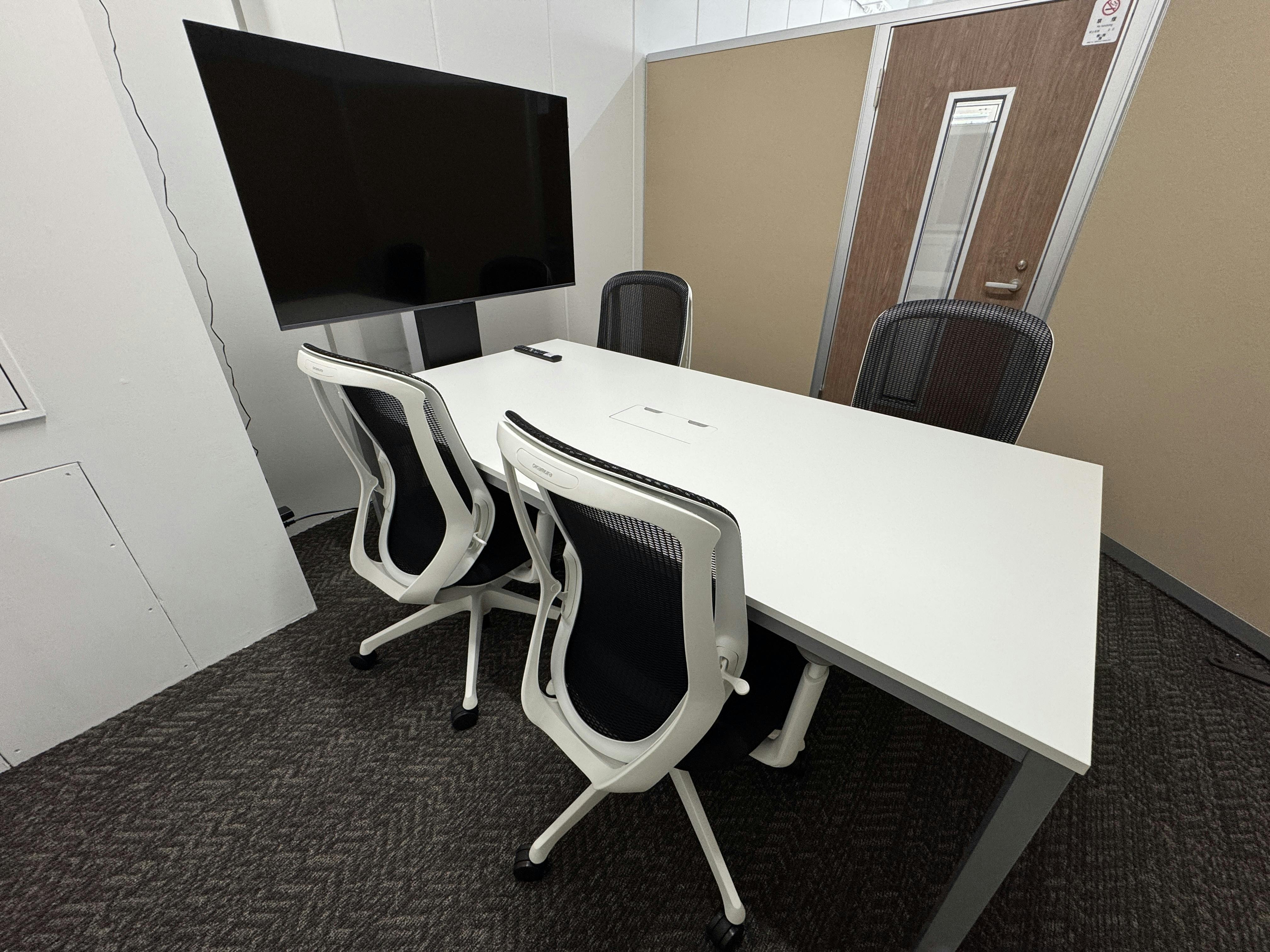 →50インチ液晶モニターを設置し、お打ち合わせ、合同誌等の共同編集といった用途に便利なグループ室を備えております。