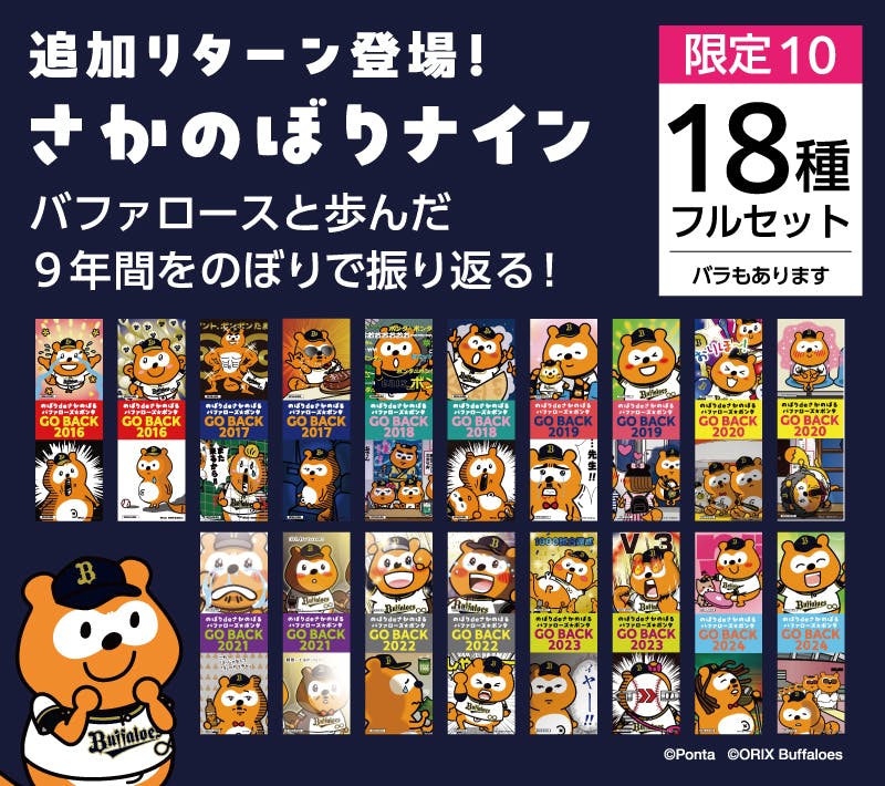 バファローズ☆ポンタの軌跡が、風になびくのぼりに──
