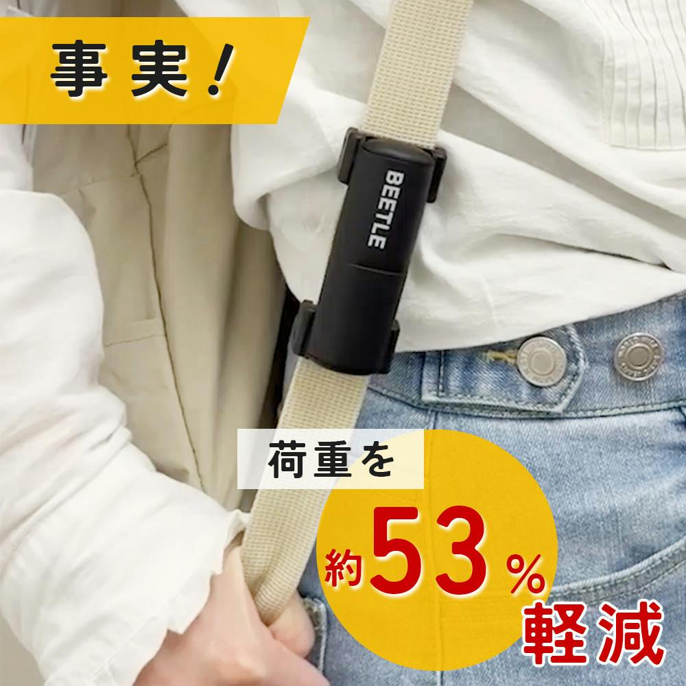 決して背負ったリュックの重量が軽くなるという魔法の製品ではありません。しかしながら、リュックを背負ったまま、行動したときのリュックの重量は静止している重量よりも瞬間的には遥かに重量が増し、これが、肩への大きな負担になります。