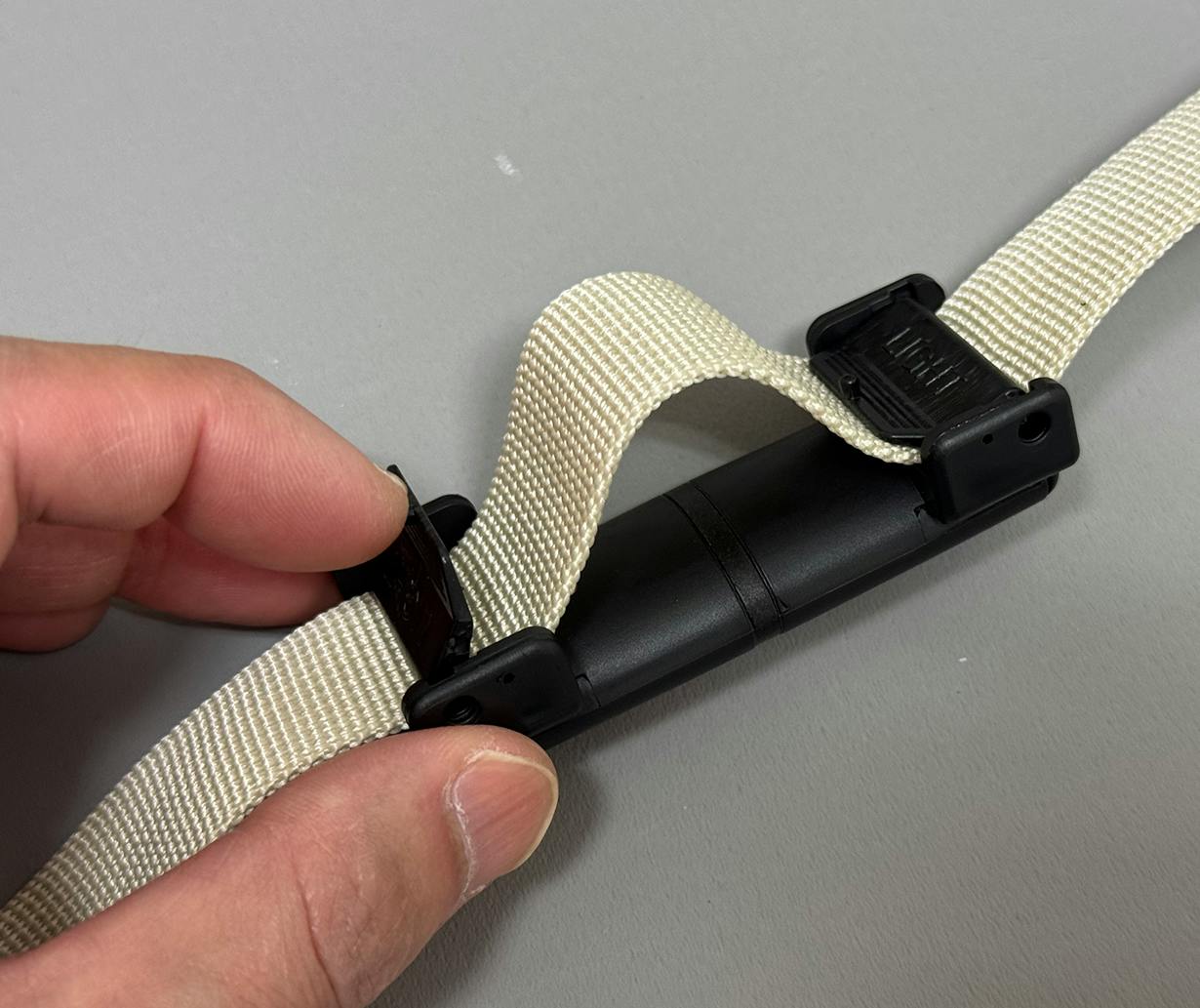 ③片方のクリップを固定し、ベルトをたわませた状態で片方のクリップを閉める