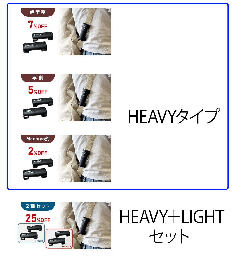 単品リターンはHeavyタイプのみです。Lightタイプは2種セットのみとなります。