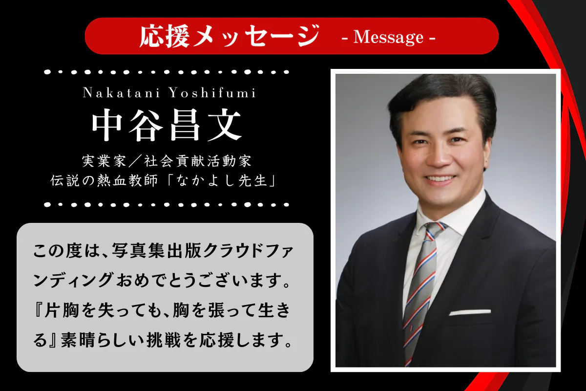 最後まで読んでくださりありがとうございます。この写真集は、乳がんという現実を抱えながらも「胸がなくても胸を張って生きる」ことを選んだ女性の物語です。年齢や見た目、過去の傷に縛られて「わたしなんて」と生きる希望を見失いかけた人へ――言葉では届かない思いを、“生きる姿”で伝えたくて、この一冊をつくりました。