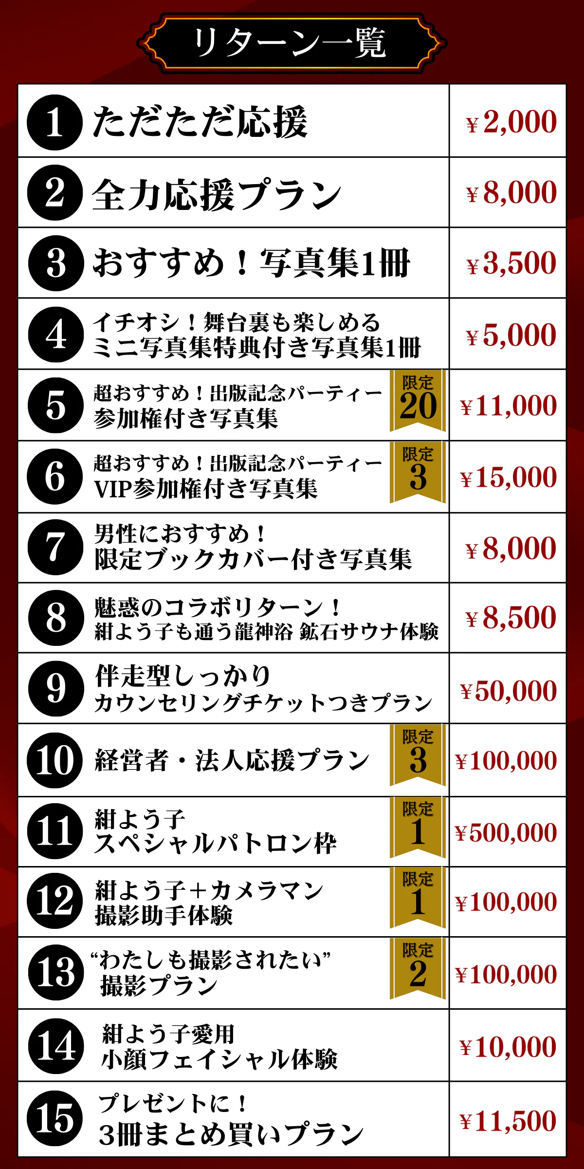 Q4:サイン入り写真集はどのリターンで手に入りますか?