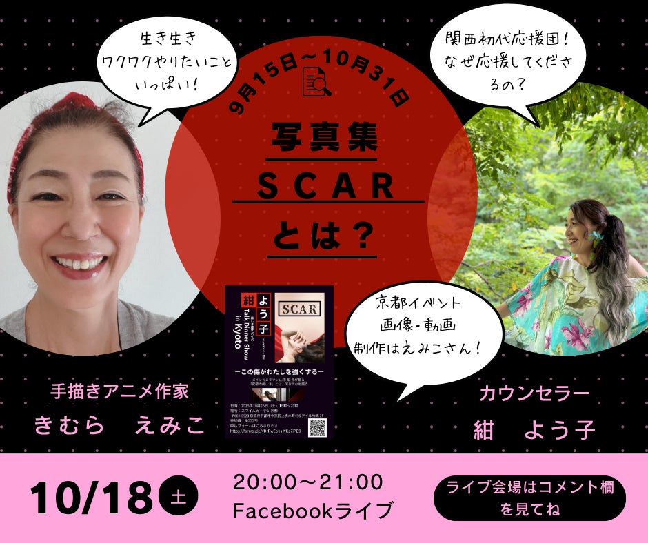 京都トークイベントのポスターや動画制作のきむらえみこさんとFacebookコラボライブ
