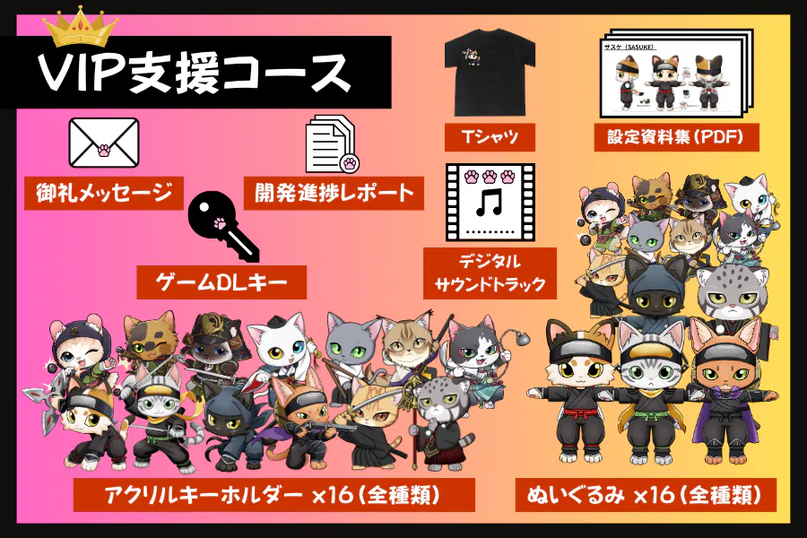 皆様のご支援が、『NINJA CATS: Tactics』をより魅力的に、そして世界に羽ばたくIPに育てていくための大きな力になります。応援、どうぞよろしくお願いいたします!
