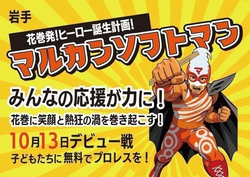この試合では花巻の子どもたちをはじめ入場無料での開催とし、マルカンソフトマンの誕生を地域でお祝い、応援し、プロレスの魅力を知っていただける機会にできればと思っています。