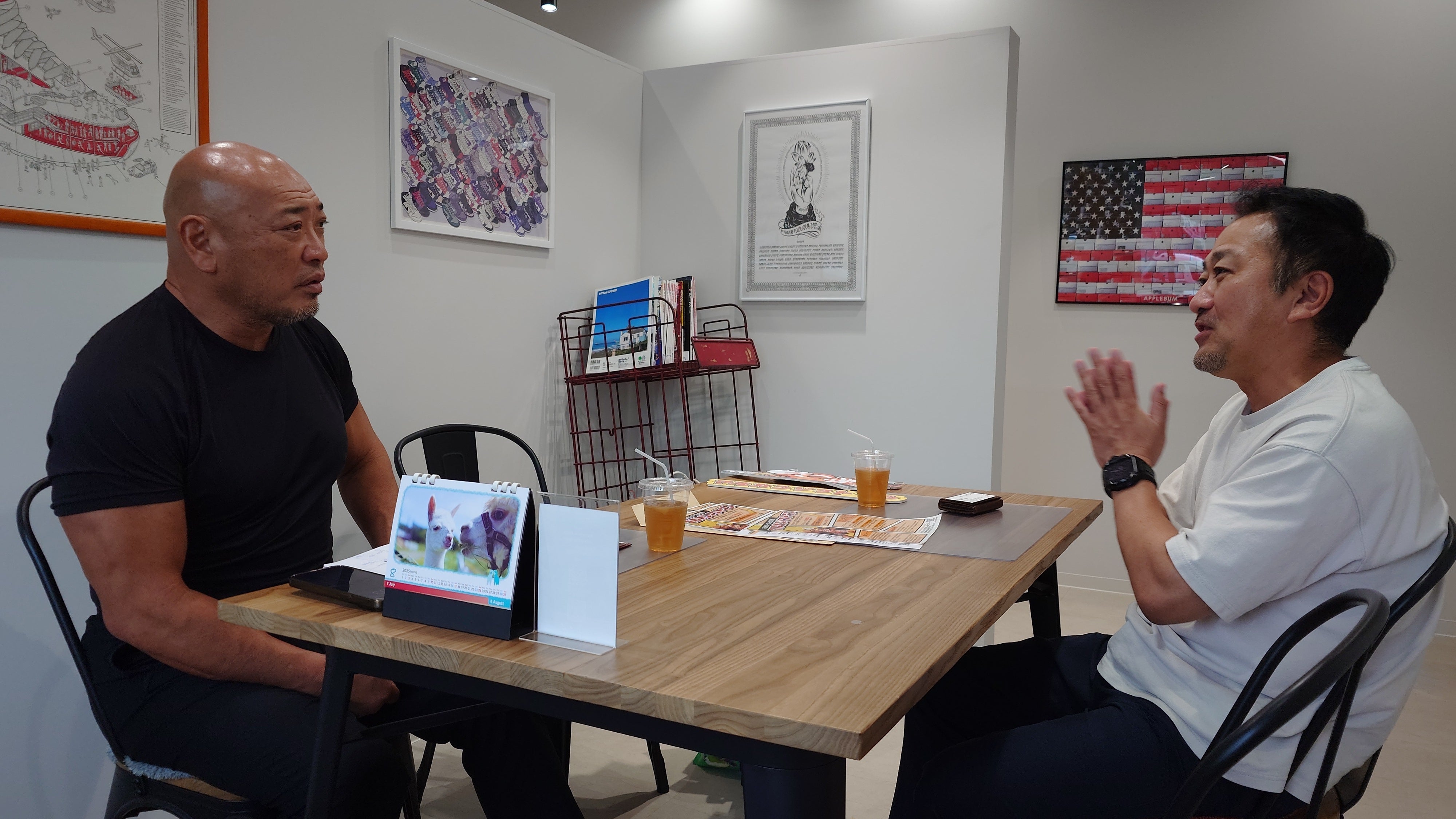 花巻市に本社を構え、1965年に畳製造業から始まり、内装工事業、リフォーム工事全般を得意とし、2022年に倉庫兼事務所だった建物をリノベーションしリフォーム専門ショップ「smile base」、2023年にはセレクト雑貨ショップ「smile goods」をオープンさせるなど新たな取り組みを行っている㈲東北物産の代表 高橋英明様(以下、高橋様)にみちのくプロレスの代表 新崎人生さん(以下、新崎)とマルカンビル大食堂を運営する㈱上町家守舎の代表 小友康広(以下、小友)がお伺いし、色々とお話を聞かせていただきました。