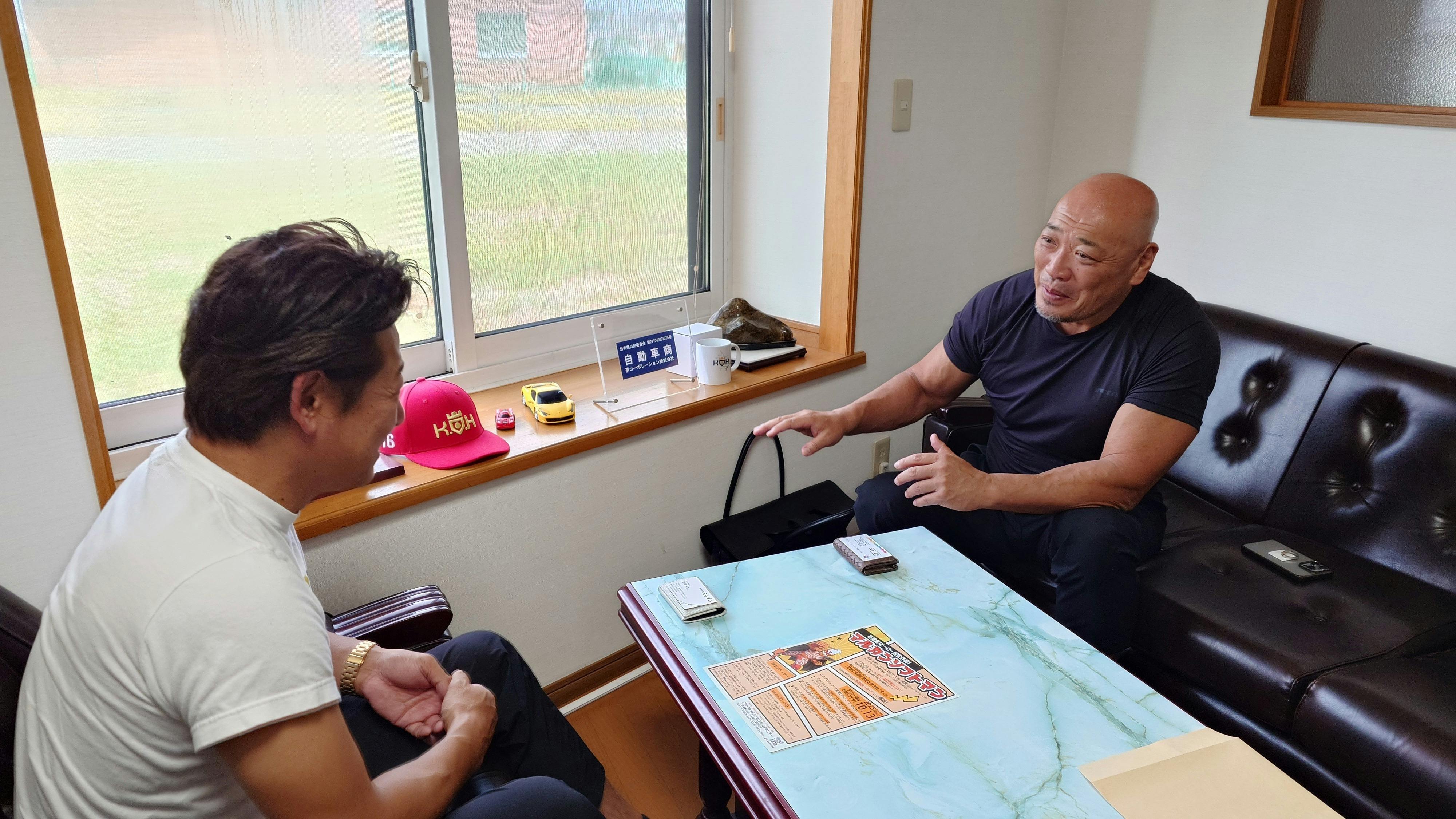花巻市を拠点に、「地域の課題を希望に変える」をコンセプトに、福祉・食品・モビリティ・IT・不動産・住宅再生など多彩な事業を展開する総合企業である夢コーポレーション㈱の代表 高橋政紀様(以下、高橋様)にみちのくプロレスの代表 新崎人生さん(以下、新崎)とマルカンビル大食堂を運営する㈱上町家守舎の代表 小友康広(以下、小友)がお伺いし、色々とお話を聞かせていただきました。