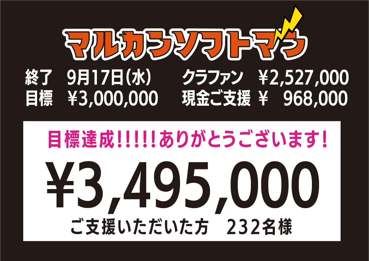 長いようで短かかったクラファン期間を終えいよいよ明日!デビュー戦の日を迎えます!みなさんに応援いただいて、達成!本当にありがとうございます。リターン品はお手元に届いていますでしょうか?ステッカーは明日会場でお渡ししその後発送させていただきますので少しお待ちくださいね。その他のグッズも会場受け取りにしてくれた方は販売所までよろしくお願いします。BIG-RE-MANさんの曲もカッコよかった!マルカンソフトマンも頑張ってくれるはず!塗り絵も集まり始めてます!あとは皆さんの応援で完成します!明日は盛り上がりましょうね!よろしくお願いします!