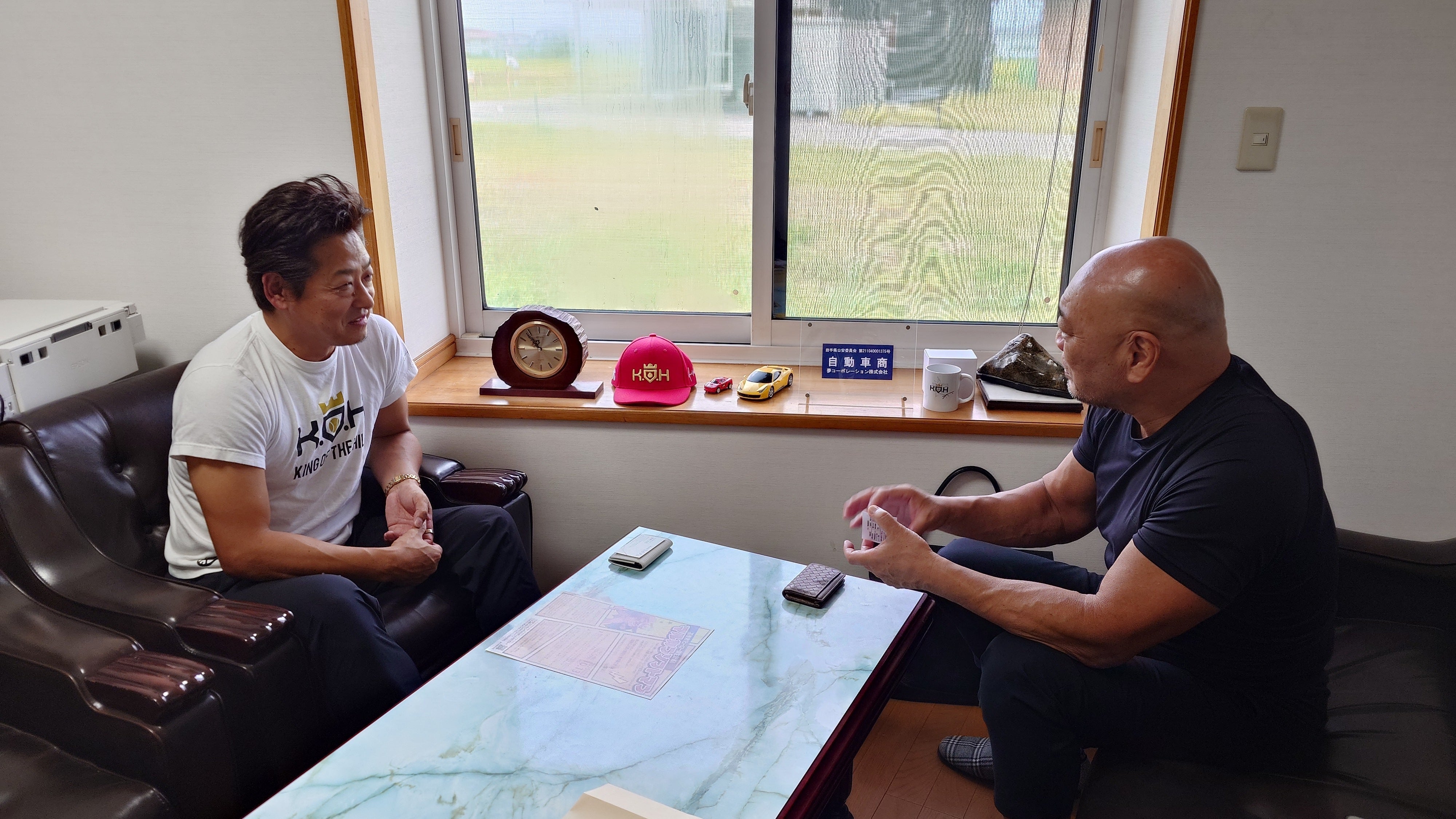 花巻市を拠点に、「地域の課題を希望に変える」をコンセプトに、福祉・食品・モビリティ・IT・不動産・住宅再生など多彩な事業を展開する総合企業である夢コーポレーション㈱の代表 高橋政紀様(以下、高橋様)にみちのくプロレスの代表 新崎人生さん(以下、新崎)とマルカンビル大食堂を運営する㈱上町家守舎の代表 小友康広(以下、小友)がお伺いし、色々とお話を聞かせていただきました。ーーーーーーーーーーーーーーーーーーーー小友:今日はよろしくお願いいたします。早速ですが「マルカンソフトマン誕生」ということを知った時の第一印象は?高橋様:花巻からヒーローが誕生するというのは今まで聞いたことが無かったのでかなり衝撃的でした。私は小学生の時に、花巻市民体育館にジャイアント馬場選手などが来ているのを見ており、プロレスの凄さを知っているので、この話を知ったときには思わず拍手してしまいました!新崎:花巻の方は花巻市民体育館でプロレスを見た記憶を持っている方が多いですね。小友:ありがとうございます!夢コーポレーションのジェラート事業でマルカンビル大食堂のソフトクリーム味のジェラートを作っていただいておりますが、地域の子どもたちと接する機会は多いですよね?高橋様:多いですね。ジェラートの他にも子ども向けの体操教室などもやっていますので。過去には花巻市の教育委員会からの委託を受けて、市内の幼稚園、保育園の運動指導を行わせていただいたり、ジェラートの売上の一部をスポーツクラブの活動費に寄付させていただいています。小友:本当に素晴らしい活動をされていらっしゃいますよね。そんな高橋様からマルカンソフトマンに期待することはございますか?高橋様:ヒーローは憧れられる存在や、夢になる存在だと思っていますので、マルカンソフトマンがそのようになっていただければと思っています。新崎:地域のために多岐にわたった事業をされている、まさにヒーローのような高橋様からそのように期待をいただけるのは嬉しいです!高橋様:子どもたちに体操教室をしている際に子どもたちが転び方を知らなかったり、他のところですが高いところからジャンプする経験が無いから危険性が分からず高いところから落ちてしまうような事故があったということを知っていました。小さな危険を遠ざけることによって大きな危険が起きているため、適切なリスク管理や痛みを知るようなことは重要だと思っています。新崎:それは我々も問題意識を持っているところでした。プロレスラーの練習で最初に覚えるのが受け身です。適切に転ぶことや怪我をしない動きを伝えていくことをプロレスの試合、体操などを通じて伝えていければと思っています。小友:子どもがそういうことを学ぶ場にマルカンソフトマンがいると、子どもたちは楽しみながら学べたりしませんかね?高橋様:それは良いですね!絶対喜びます!新崎:それやりたいですね!小友:今後そのようなコラボの企画やイベントもどんどんやっていきたいと思っていますので、是非とも色々とご一緒させてください。高橋様:はい、もちろんです。応援してます!ーーーーーーーーーーーーーーーーーーーーマルカンのソフトクリームは専用の機械がないと提供できないため夢コーポレーションさんにお願いしてカップに入った全く同じ味のジェラートを作成していただいています!その他にも体操教室などは驚きました!新しいコラボができそうな気がしてなりません!応援動画もいただきました!ありがとうございました!
