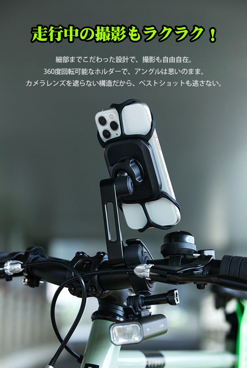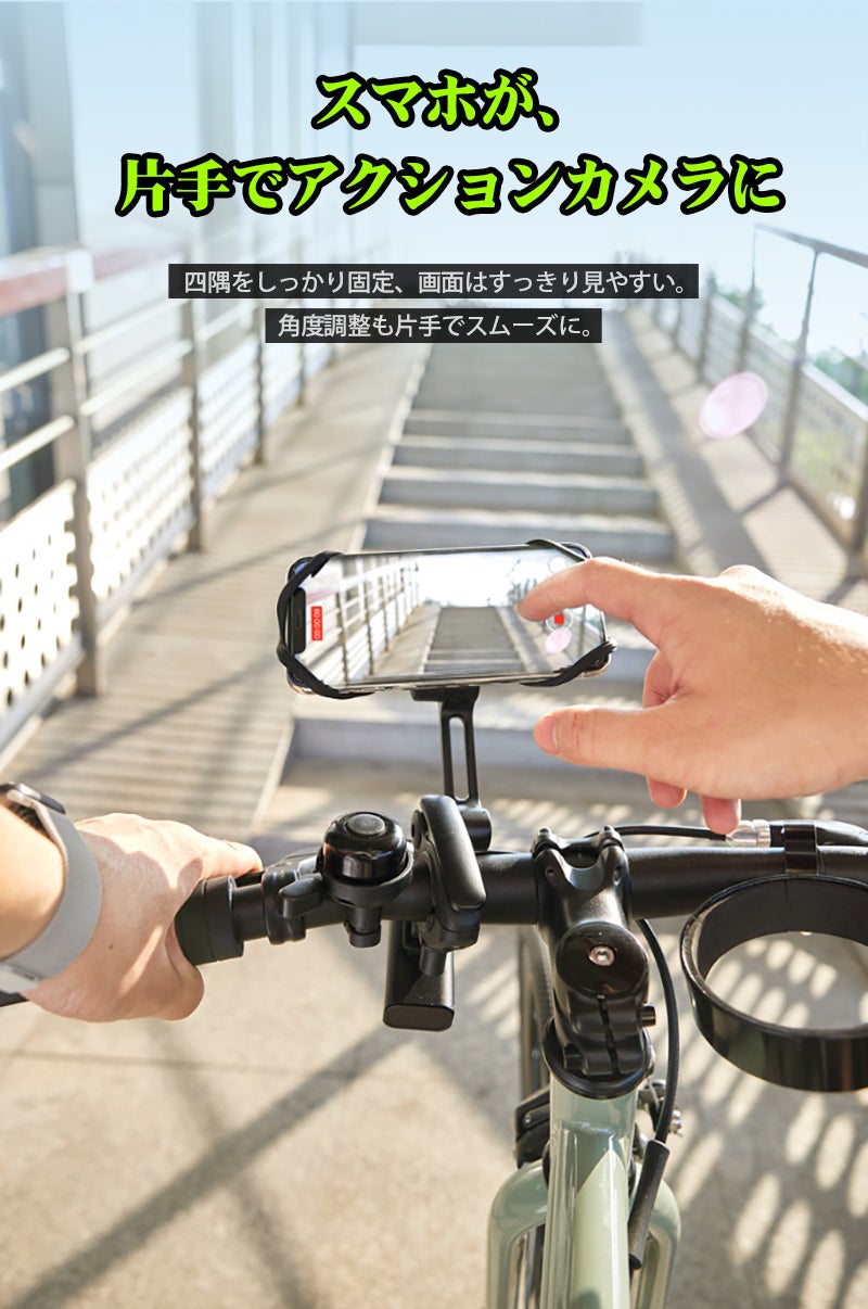 360度回転可能な構造により、自由自在にアングルを調整でき、スマホのカメラレンズを遮らない設計で、思い通りの構図が叶います。