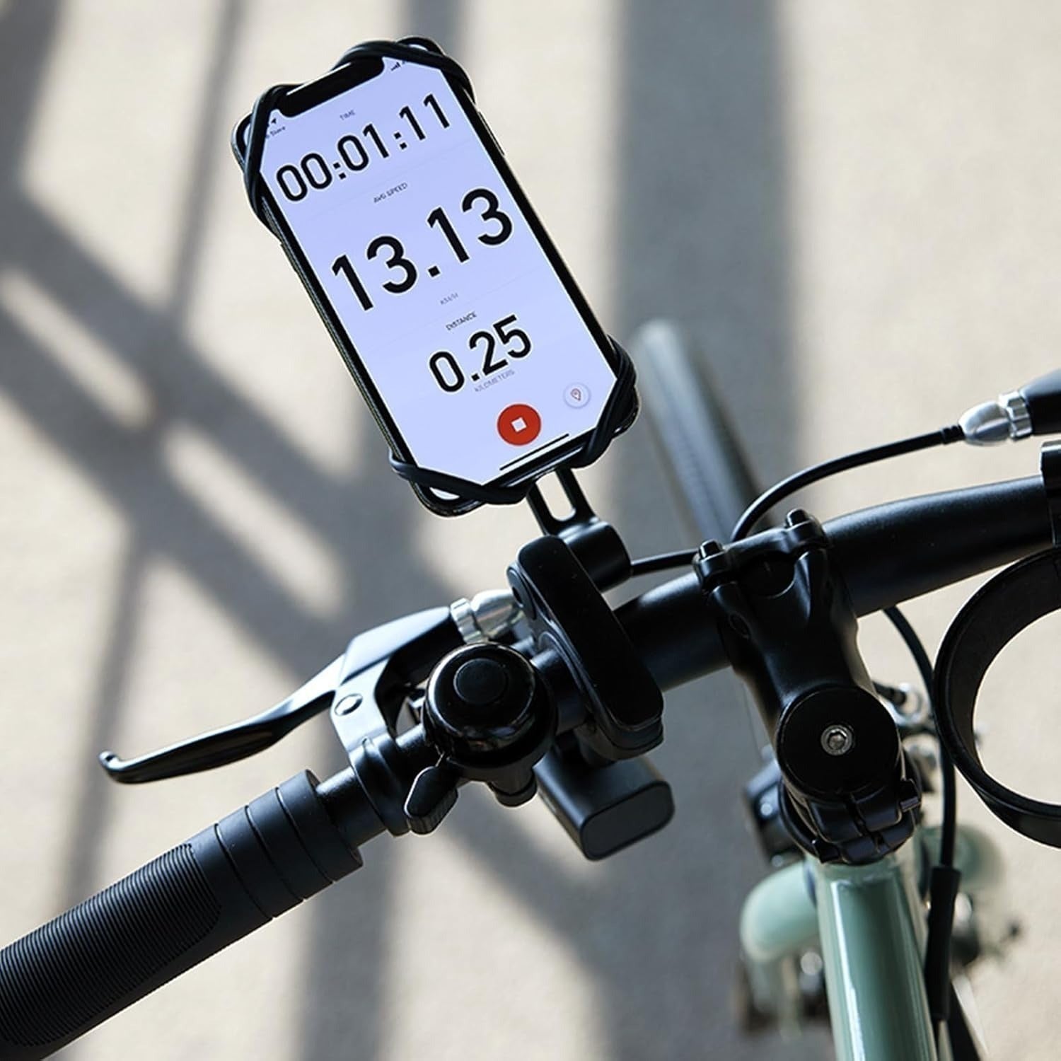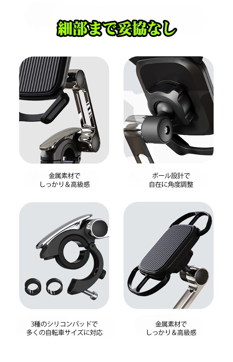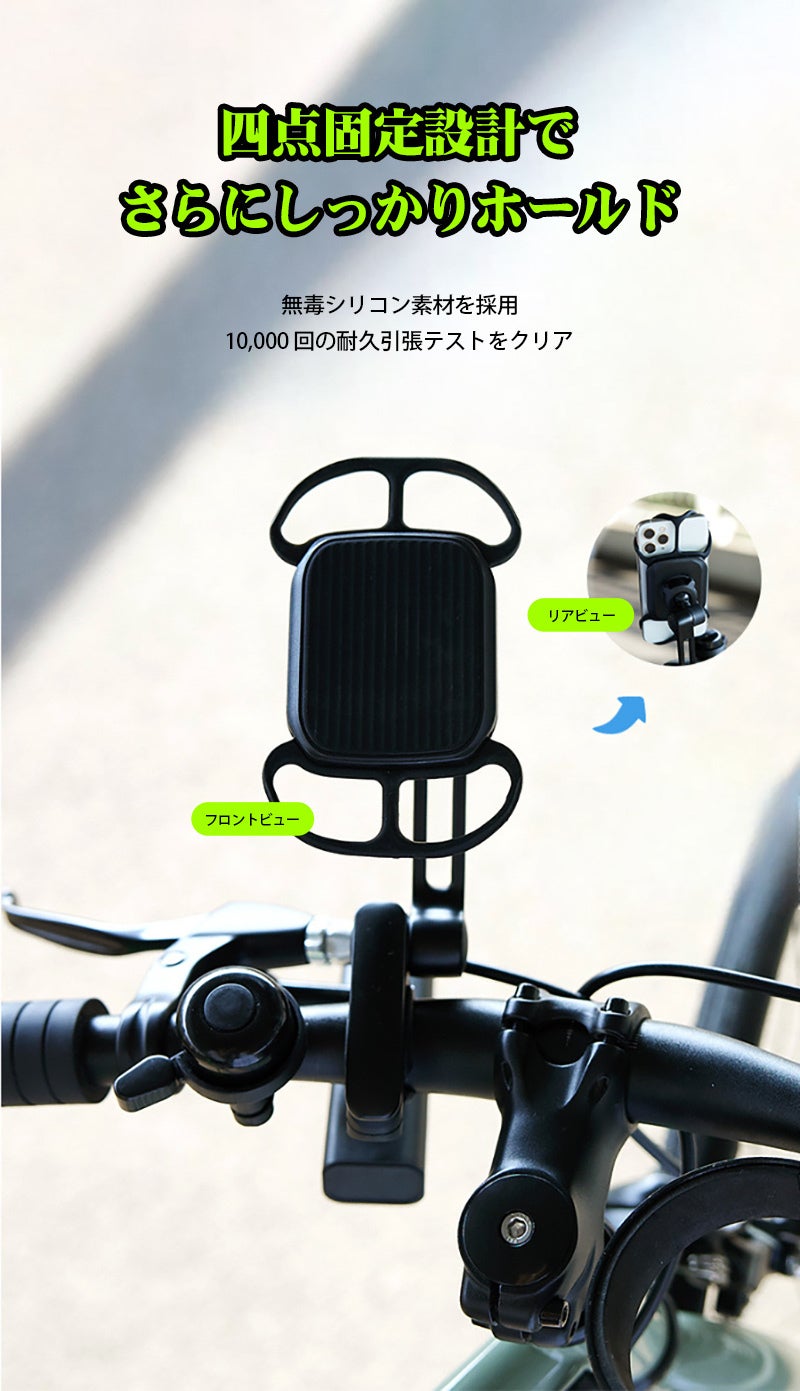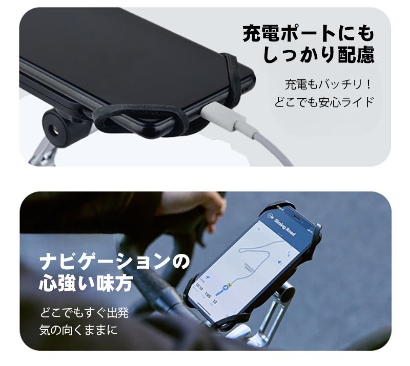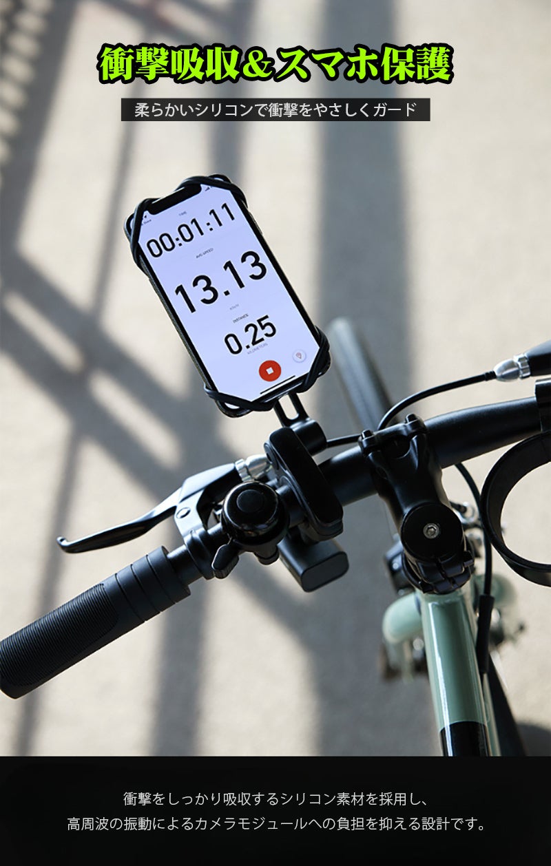 A. はい。高耐久のシリコンバンドと金属製の固定アームで、走行中の振動や段差にも強く、スマートフォンをしっかりホールドします。