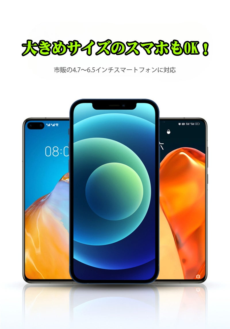 A. 画面サイズが4.7~7.0インチのスマートフォンに対応しています。ケースを装着したままでも使用可能な場合がほとんどですが、厚みがあるケースの場合はご確認ください。
