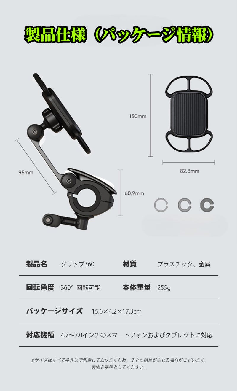 市販のスマホホルダーは、正直どれも満足できませんでした。