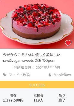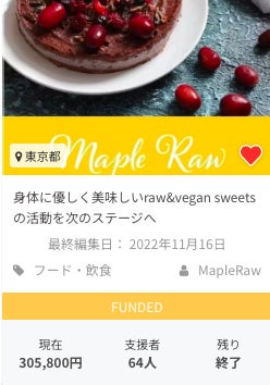 今回ご用意したリターンは、Maple Rawの“優しさスウィーツ”を