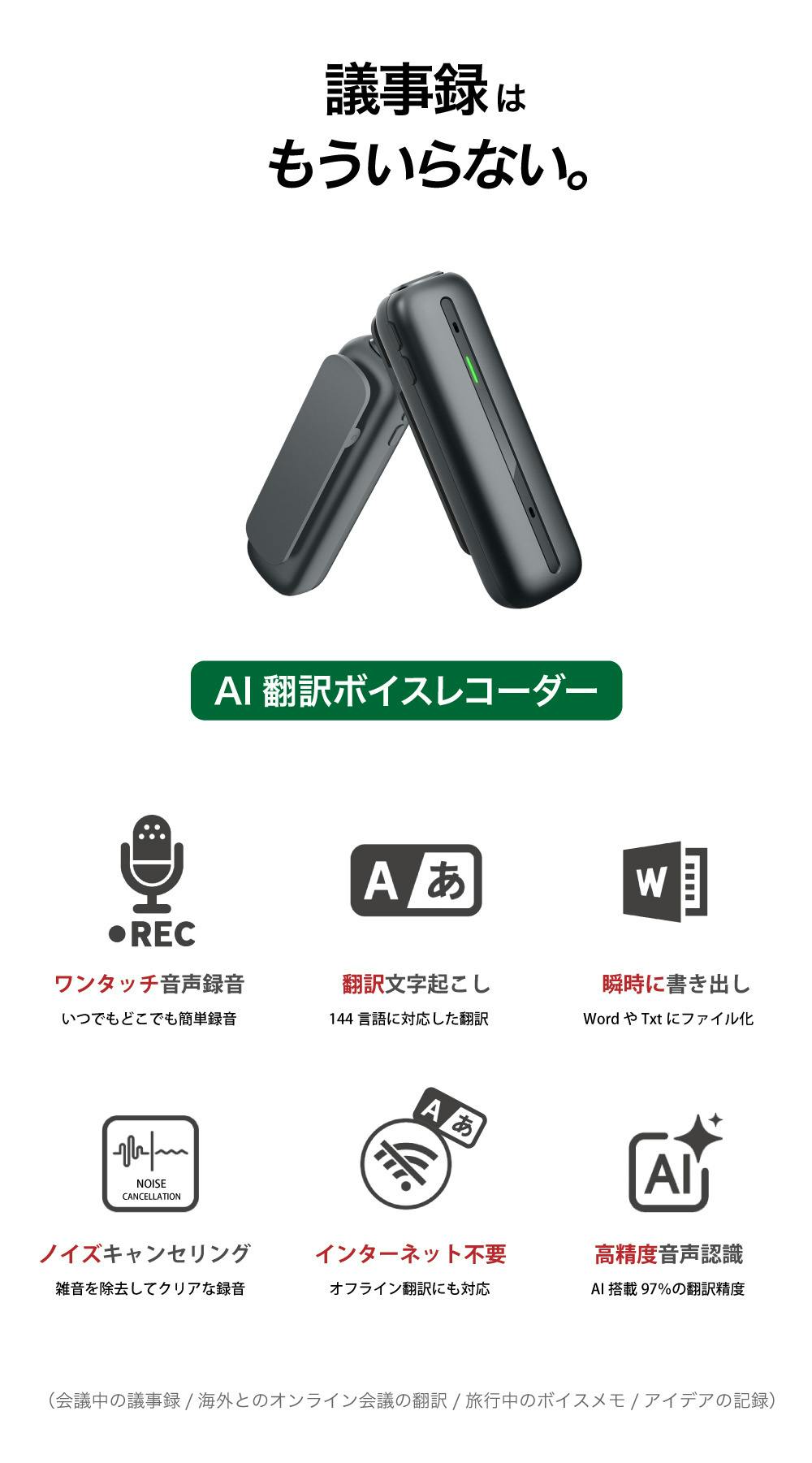 この高い音声認識マイクとAI機能によって高い音声認識能力を発揮。翻訳や文字起こしの精度も高精度を実現することが可能になりました。