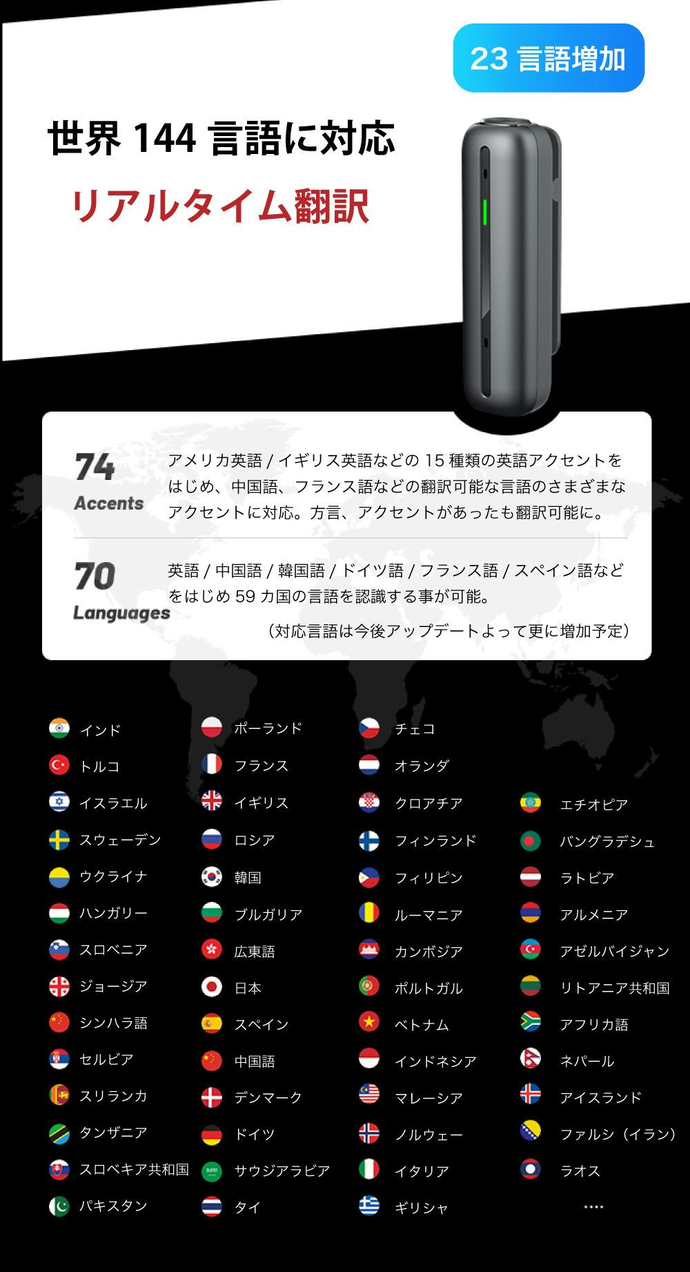 70カ国+74の方言などのアクセントにも対応しています。