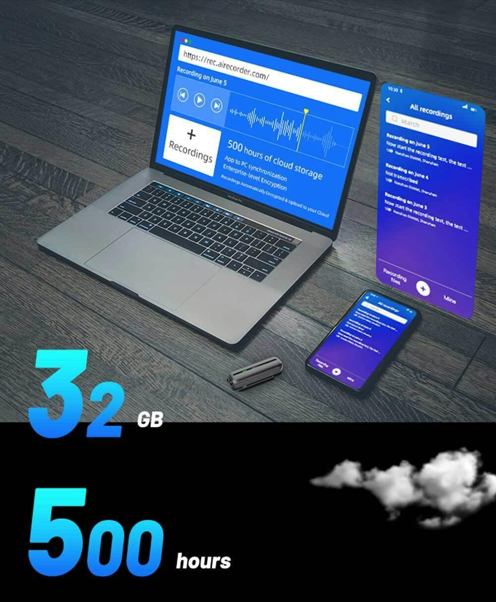 クラウドストレージとも連携可能で最大500時間分の録音を保存することが可能です。