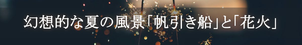湖に映る帆引き船と、夜空に広がる花火――まるで絵本のような景色がそこにあります。