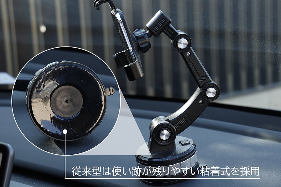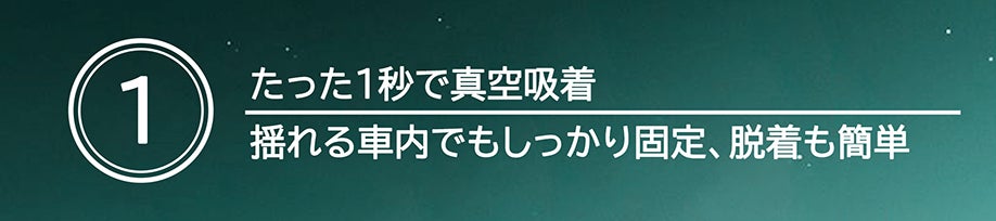 ●たった1秒で真空吸着、揺れる車内でもしっかり固定、脱着も簡単!
