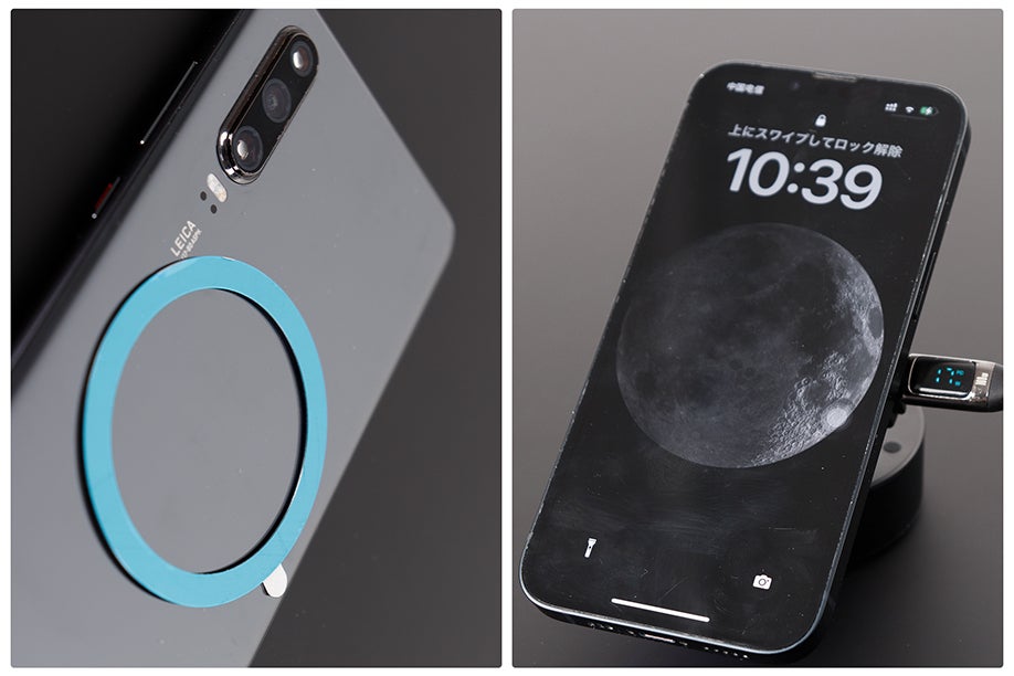 また、金属製の補助シールを用意し、磁気ないスマホの後ろに貼れば、本体の磁気面に固定することができます。