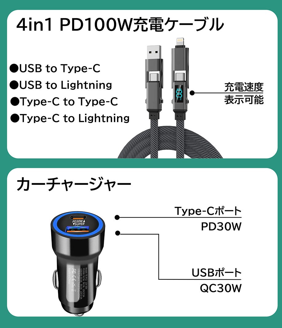 対応出力:PD30WとQC30W※カーチャージャーはサブリターンで追加支援することが出来ます。