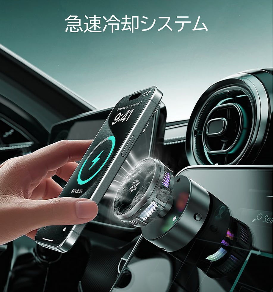 3種類のホルダーとQi対応以外に、もう一つの革新的なポイントは急速冷却システムを導入したことです。