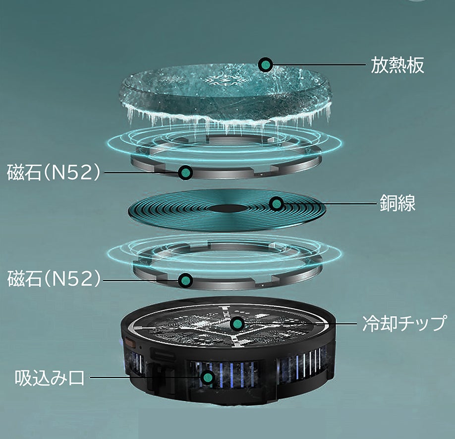 「Pylo」の冷却システムはペルチェ素子を採用し、僅か3秒で冷たくなります。