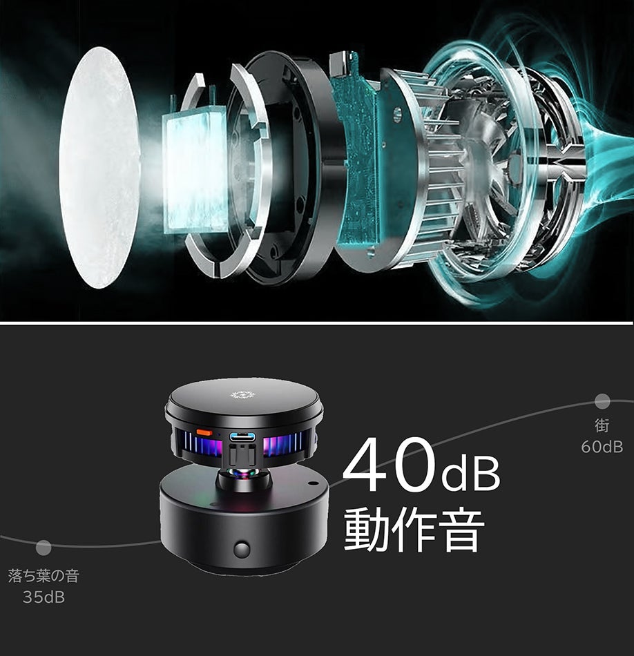 高性能なのに、作動音(冷却とワイヤレス充電の時)はわずか40dBに抑えることを実現しました。