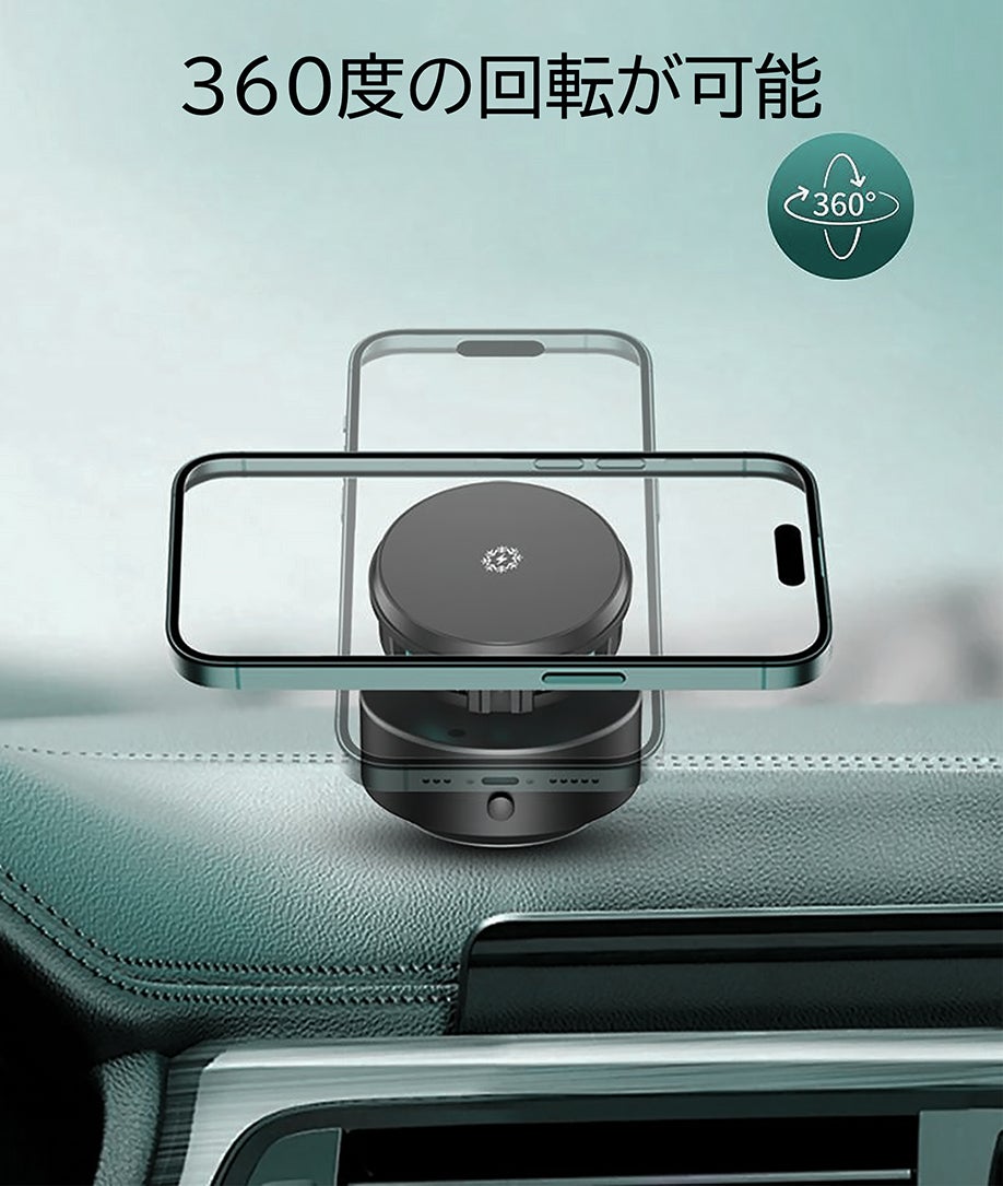 ※最大の15Wを実現するため、出力が30W以上のUSB電源が必要となります。車に備え付されたUSB-Aポートの出力が低い場合、ワイヤレス充電の最大出力は落ちます。その場合は別途のカーチャージャーを利用してください。