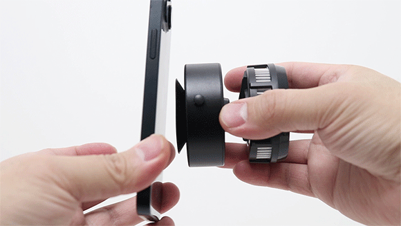 付属したグリップを本体に装着すれば、スマホをしっかり挟むことができます。