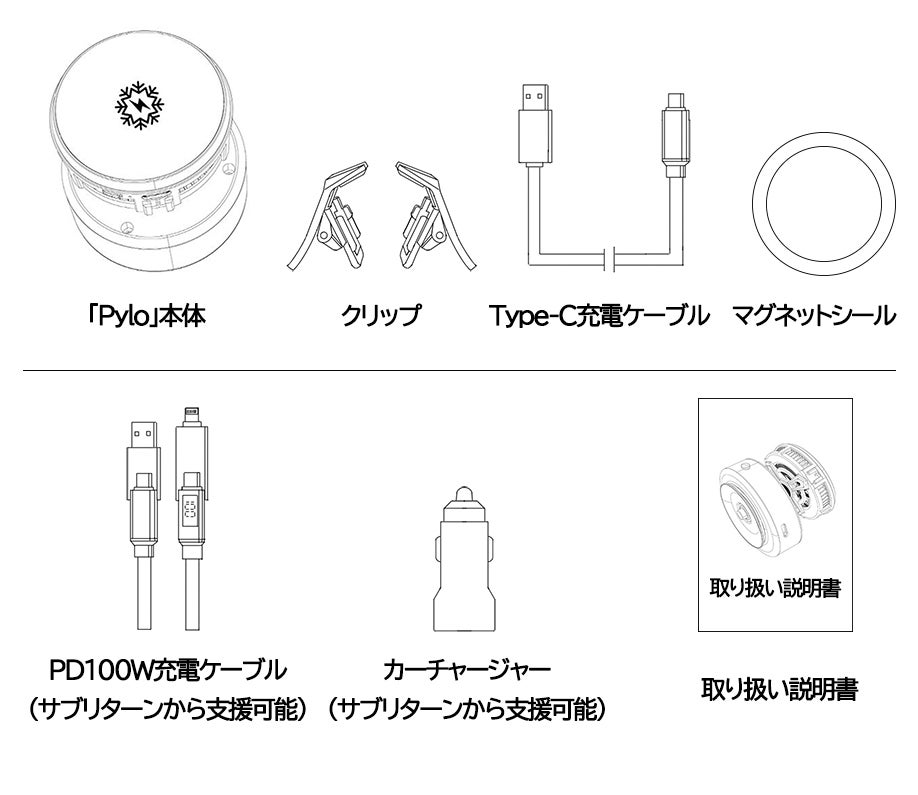 イヤレス充電機能の最大出力を発揮するため、PD/QC出力30Wのカーチャージャー、リアルタイムで充電速度が見えるPD100Wの充電ケーブル(Type-C to Type-C)も用意しました。所持していない場合、各リターンの追加選択肢からご支援できます。