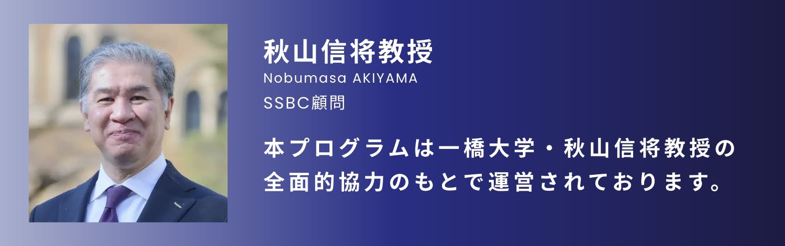 このプログラムは、一橋大学・秋山信将教授の全面的なご協力のもと、秋山ゼミの学生に加え、過去のSSBC卒業生も運営に加わり、まさに学生主導で作り上げています。