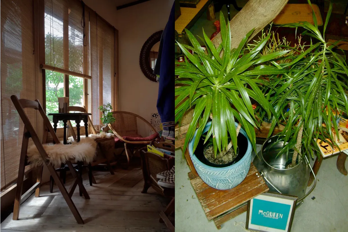McQUEEN COFFEE SHOP 松陰神社前に開設するこのお店は、私がセレクトした観葉植物や古着、古道具などの販売。