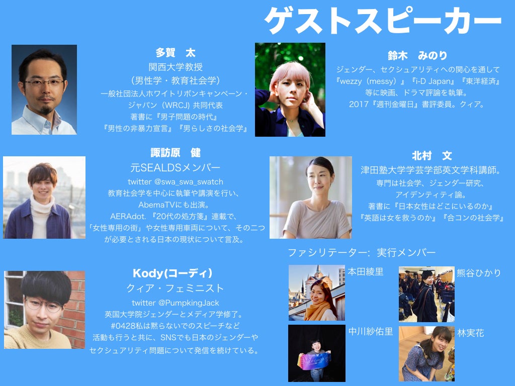 イベント当日は、プロの方々をお招きし、改めて、ジェンダーを通して、人がその人らしく生きることのできる、そんなそれぞれの「らしさ」を受け止めることのできる「やさしい社会」について、みんなで考えませんか?