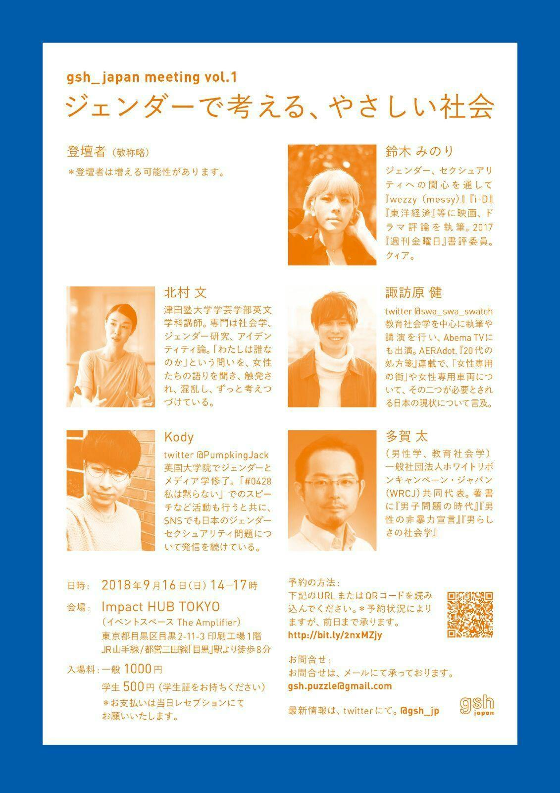 2018/09/30 02:53 「ジェンダーで考える、やさしい社会」 2018年9月16日、東京都目黒区Impact HUB Tokyo (https://hubtokyo.com/)で開催され、 約70名の方にお越しいただき、大成功となりました!! 当日は ジェンダーで考えると、やさしくない社会・女性とアイデンティティ・ジェンダーとメディア・男性は下駄を履いている?ジェンダーを、もっと自分ごと化してみる・性暴力はだれの問題?・メディアにおけるジェンダーの描かれ方とその影響・ジェンダーに関する経験の違い 等を話したのち、 参加者のみなさんも含めて、「どうしたら、やさしくなる?」についてお話をしました。 ジェンダーのこと。 それは、大学の講義室で学ぶ「ちょっと難しい何か」ではなく、 テレビで女性差別反対を唱えるデモに参加する人たちだけのものではなく、 「LGBTの人たち」だけのものではなく 私たちの隣に座る大切な人、私たち自身のこと、です。 「男らしさ」「女らしさ」の二分化がまだまだ根強いこの社会で 自分が「女らしさ」「男らしさ」に当てはまるか当てはまらないかで見られるのは、とても苦しい。でも、その苦しさを放っておいたままだと、 いつしか自分の隣に座る大切な人のことも 「男らしさ」「女らしさ」で見たり、評価したり、 そんな風になってしまいそうな気がしてなりません。 ジェンダーのこと。私たちのこと。誰を、どんな風に愛するか、どんな風に生きていきたいか。 ひとりひとりの「こうでありたい」が少しでも尊重される社会に近くために。 そんな願いの込められた私たちのイベントに今回参加していただいたみなさん、 応援のメッセージをくださったみなさん、 そして、イベントの実行に欠かすことの出来なったクラウドファンディングのパトロンになって下さった皆さん、 この度は本当に、本当にありがとうございました!!! ジェンダーで考える、やさしい社会実行メンバーの活動をこれからもどうか、よろしくお願いします! ※クラウドファンディングのリターンに含まれている動画は、現在準備中です。完了次第、パトロンのみなさんにお送り致します。 もっと見る